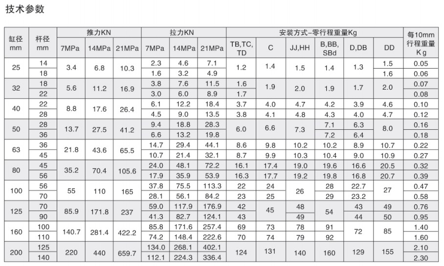 3.活塞桿直徑-25mm至140mm