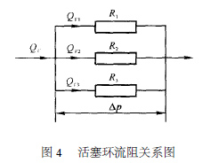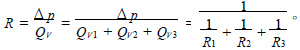 回路流量與各個泄漏流量的關系為QV =QV1 + QV2 + QV3 ,總的流阻與各泄漏回路支路流阻之間的關系為